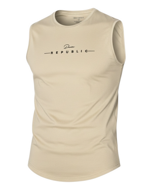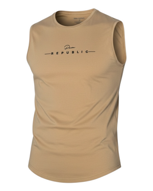 The washed finish and subtle logo print on chest and a print on the back giving it a stylish edge, making it perfect for both casual weekends and smart everyday looks. Lightweight yet durable, this cotton muscle top is designed to keep you cool and comfortable all day long.